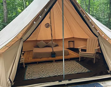 Wanting to get away and dive into nature? Glamping is perfect for you. Experience glamping at Harmony Tree Resorts. Each tent has a queen bed along with a battery power back.